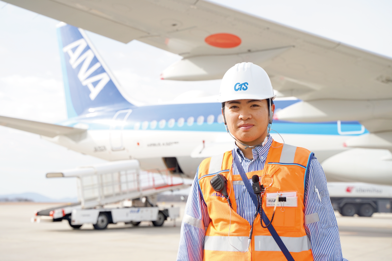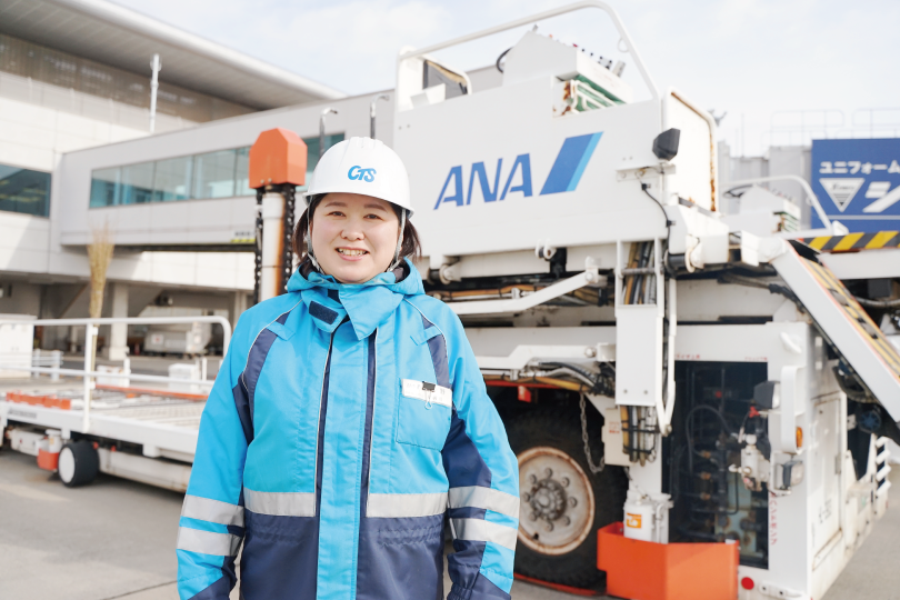 CTS初の女性グランドハンドリングスタッフとして、女性が働きやすい環境づくりや後輩の育成に力を入れていきたいと考えています。自身の経験を活かし、不安や悩みを共有しやすい職場づくりに貢献し、チーム全員が前向きに働ける環境を目指しています。