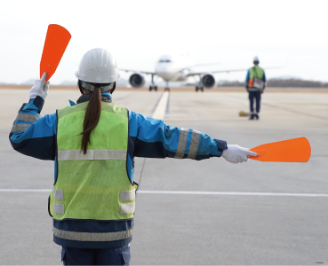 航空機の到着から出発まで、航空機機側での地上支援業務を行います。